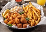 2 pieces tilapia, 3 jumbo shrimp, 2 pieces hush puppies.
